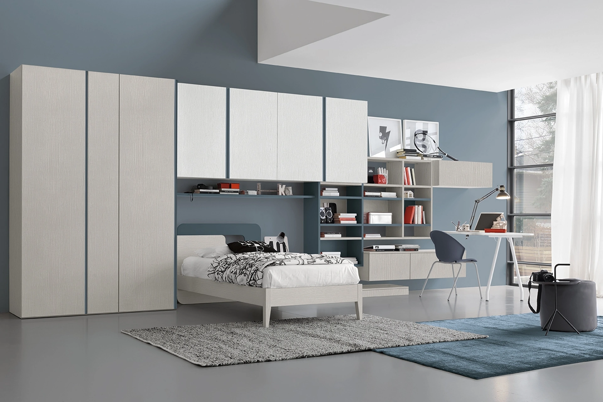 Questa proposta in melaminico ultima perfettamente le qualità pratiche e il valore estetico della camaretta, poiché è capace di abbinare funzionalità ed ergonomia. Porta valore estetico e tonalità vivaci nella stanza dedicata ai bambini con questa soluzione, una delle Camerette a ponte per ragazzi di Colombini Casa. Colombini Casa mette a disposizione un ricco catalogo di accessori da accostare su misura: troverai letto, armadio o cabina armadio, scrivania, sedie e librerie. Se cerchi spunti progettuali per arredare perfettamente la stanza dei tuoi figli, ti proponiamo la Cameretta Golf Y31 di Colombini Casa con finitura in melaminico.