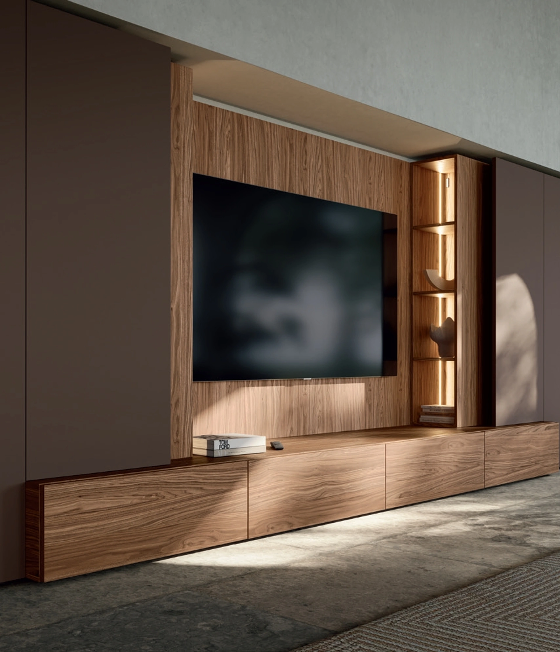Anche in un living non troppo grande, questo tipo di arredo riesce a ottimizzare gli spazi sfruttando bene ogni angolo e garantendo componibilità personalizzabile tipica delle soluzioni moderne. La Parete Attrezzata Slim Noce Canaletto di Dall'Agnese nella fotografia, realizzata in legno, risolve le più personali problematiche abitative di stile e spazio senza rinunciare alla ricerca stilistica. Se cerchi mobili salvaspazio e realizzabili su misura per te, contattaci e ottieni informazioni sull'Arredamento Casa dei migliori brand. Un po’ librerie, un po’ contenitori ed espositori: le Pareti Attrezzate sono ideali per ottimizzare un luogo dinamico e operativo.