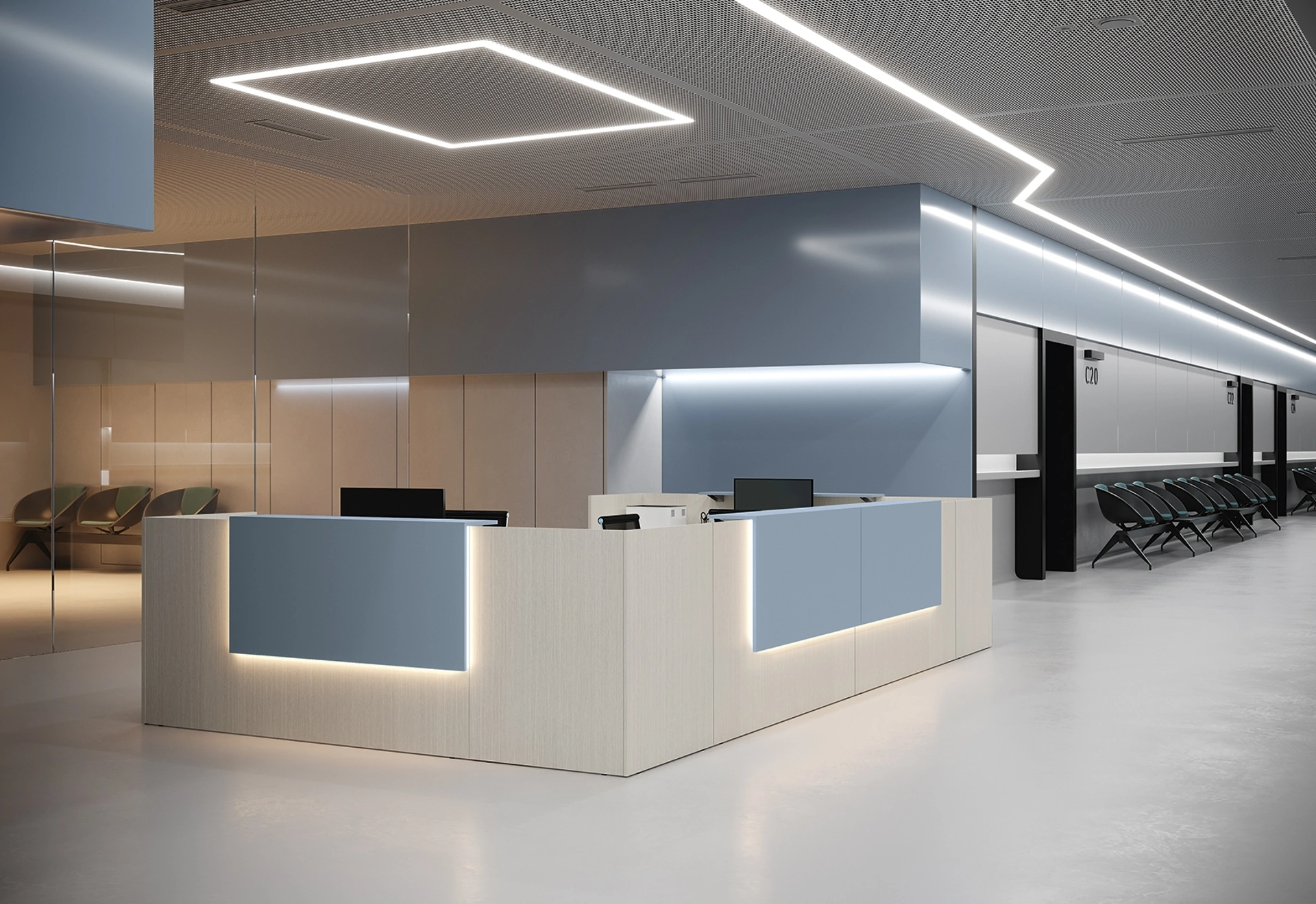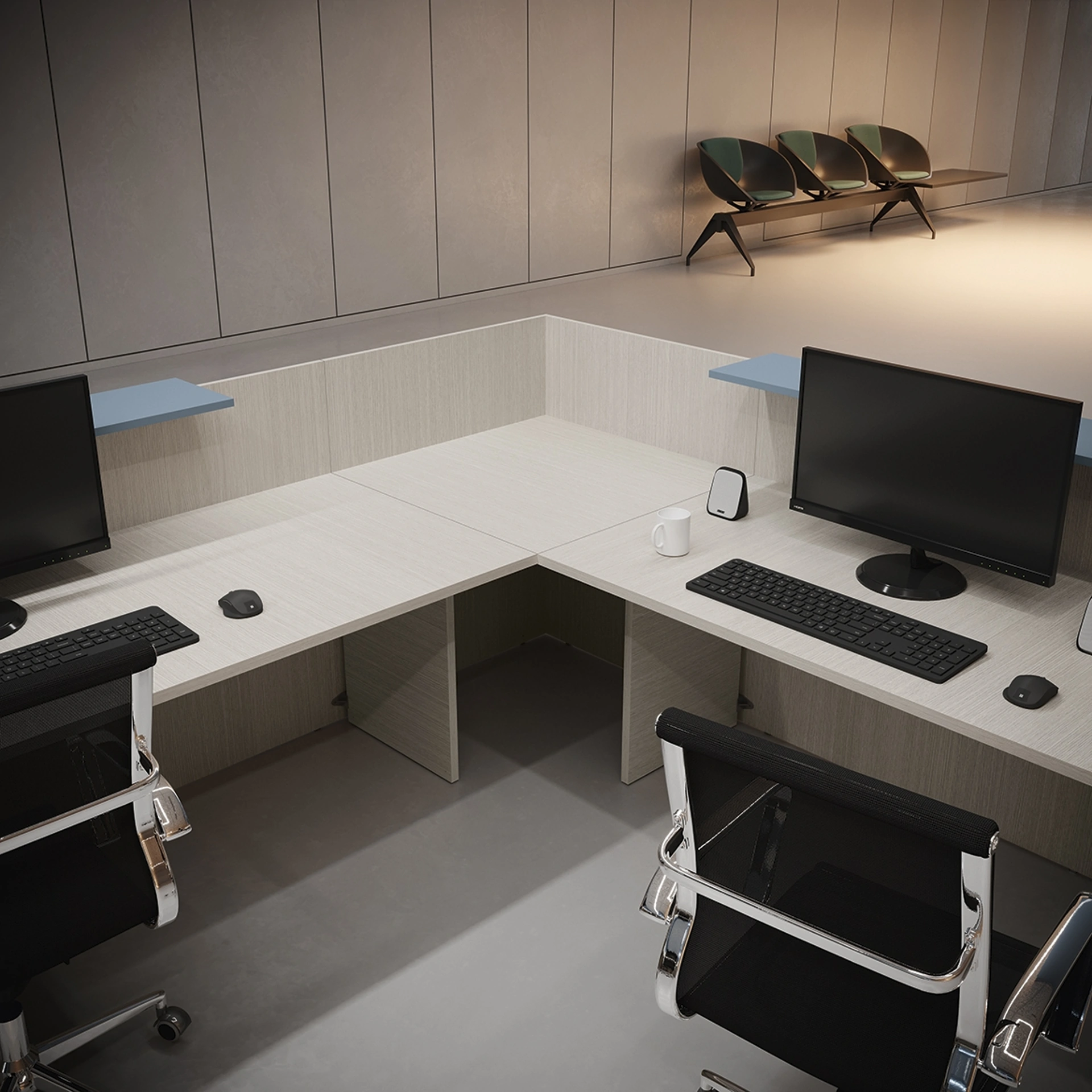 Nel nostro showroom proponiamo diverse composizioni con banconi reception Colombini Office in melaminico, sempre in materiali di prima scelta e resistenti nel tempo. Il noto e conosciuto brand lavora sempre al passo con le necessità di ciascuno, difatti produce ogni sorta di Arredo Ufficio in melaminico. Al giorno d'oggi l’Arredo Ufficio deve rispondere a le esigenze di praticità e comfort per chi svolge il lavoro, quelle di accoglienza e serietà innanzitutto per i clienti. Materiali pregiati, una buona resa estetica e design unico rendono riconoscibile la ricca serie di arredi per gliambienti lavorativi del brand Colombini Office.
