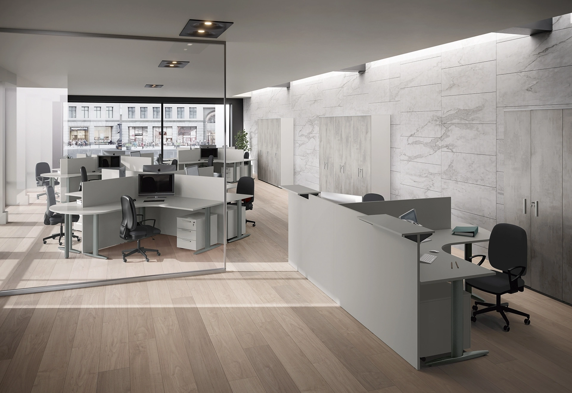 Guarda nel nostro negozio molteplici modelli di scrivanie operative di ottima fattura, sempre costruiti in materiali di qualità e che resistano negli anni. Arredare con attenzione gli ambienti di lavoro è di primaria importanza per garantire il comfort per chi svolge il lavoro e l’accoglienza per i clienti: il nostro showroom ti aspetta. Scrivania Operativa Teko Smart di Colombini Office: è uno dei migliori esempi di mobili per gliambienti lavorativi pratici e belli da vedere del rinomato brand. In showroom puoi toccare con mano le più esclusive composizioni di Arredo Ufficio in melaminico, sempre belle e resistenti e ideali per locali di ogni genere.